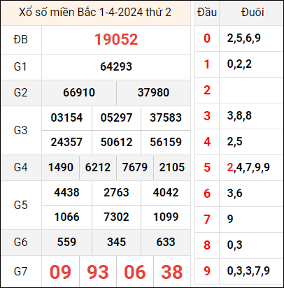Trước khi chốt lô dự đoán miền Bắc 2/4/2024 mời các bạn xem lại thống kê Xổ số miền Bắc thứ ba hàng tuần chiều tối ngày hôm qua chi tiết đầy đủ lô tô 2 số, lô lô 3 số dưới đây: