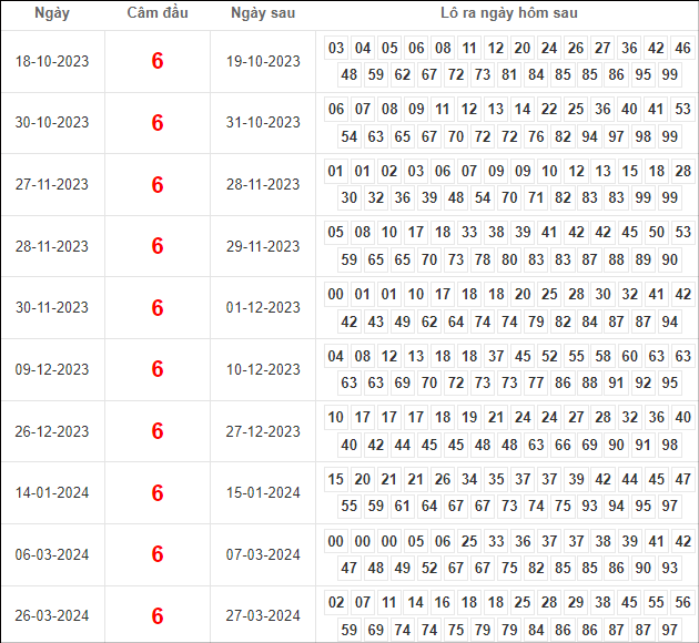 - Bạc nhớ đầu câm 6, dự báo khả năng cao hôm nay sẽ có lô 60 – 66