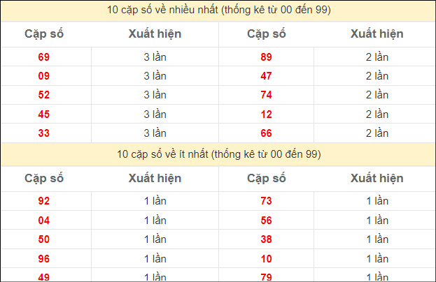 ⭐️ Thống kê tần suất các cặp lô về nhiều trong 10 ngày gần đây: 16 (7 lần), 10, 22, 52, 61, 69 (6 lần), 50, 57 (5 lần)