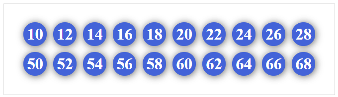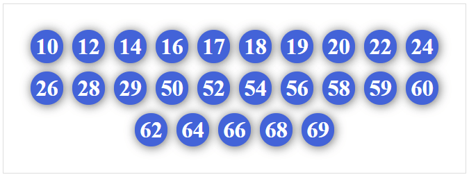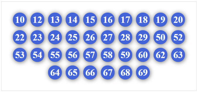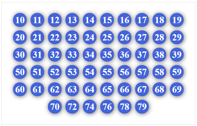 20, 21, 22, 23, 24, 25, 26, 27, 28, 29, 50, 51, 52, 53, 54, 55, 56, 57, 58, 59