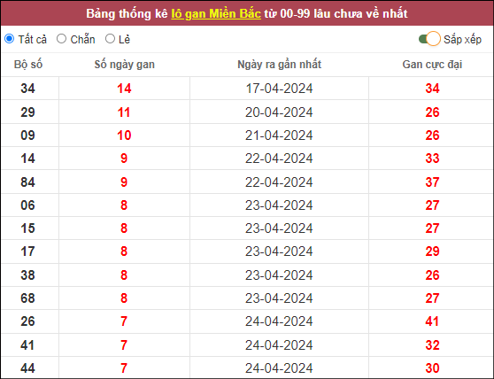 ⭐️Lô khan XSMB lâu ra nhất: 34 – 29 – 09 – 14 – 84