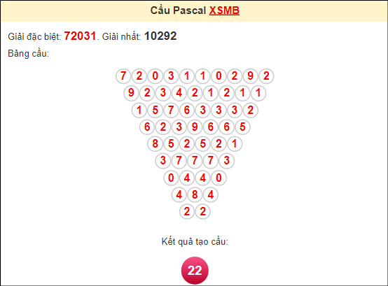 Kết quả từ soi cầu Pascale là cặp số may mắn: 22