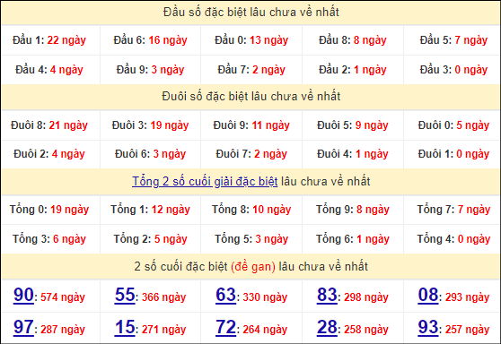 Thống kê hai số cuối giải đặc biệt miền Bắc ngày 2 tháng 5