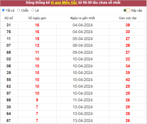 Thống kê lô tô miền Bắc hôm nay 21/4/2024