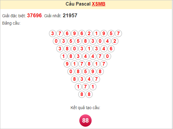 Kết quả từ soi cầu Pascale là cặp số may mắn: 88