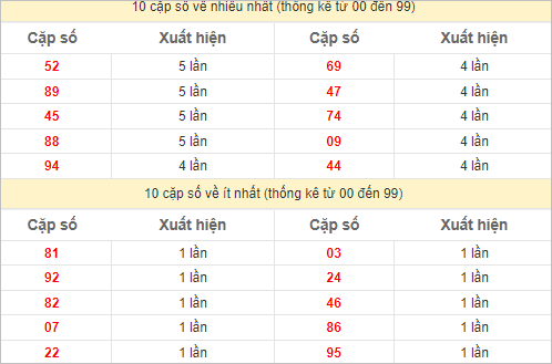 Các cặp số nóng nhất hôm nay: 37 – 28 – 52 – 69 – 82